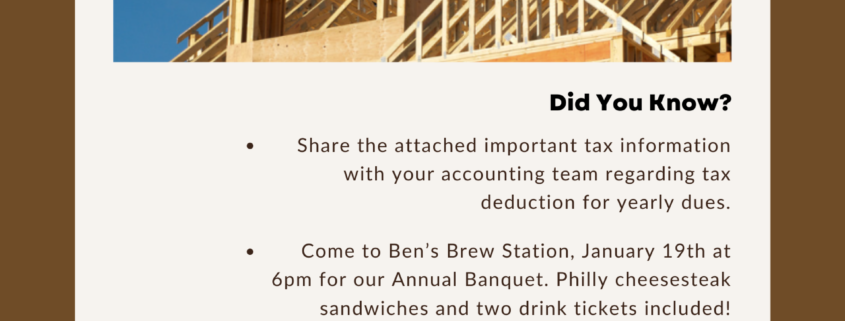 You should have received an email with this Did You Know that had an attachment about important tax information to share with your accounting team regarding tax deductions for yearly dues. If you didn’t have it, please contact us to get a copy.